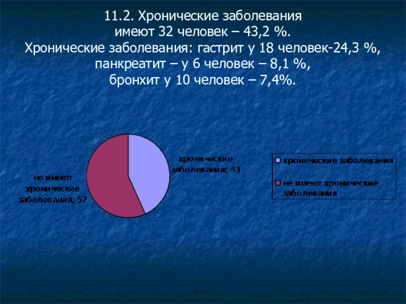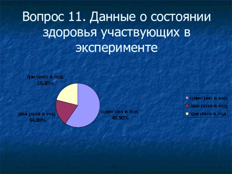 Слайд 40Вопрос 11. Данные о состоянии здоровья участвующих в эксперименте