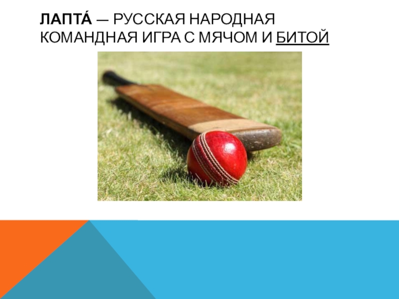 Слайд 2Лапта́ — русская народная командная игра с мячом и битой