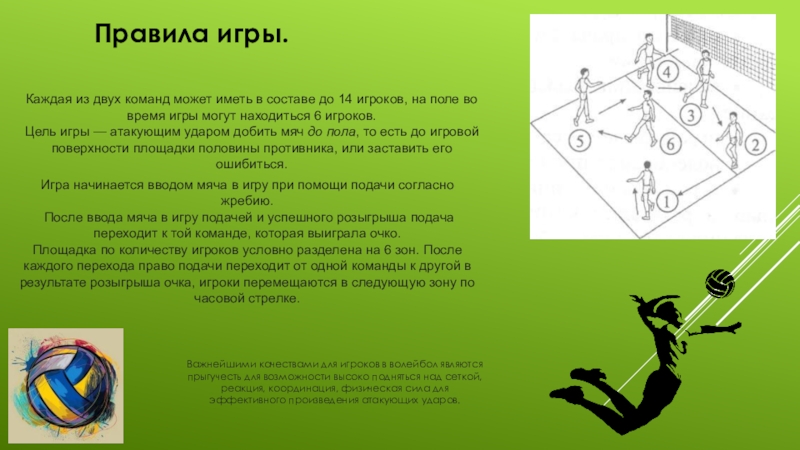 Цель игры — атакующим ударом добить мяч до пола, то есть до игровой поверхности площадки половины противника, или заставить его ошибиться.