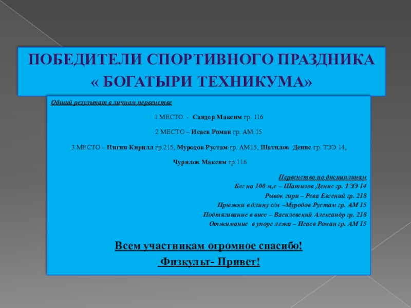 Это сайт презентаций, где можно хранить и обмениваться своими презентациями, докладами, проектами, шаблонами в формате PowerPoint с другими пользователями. Мы помогаем школьникам, студентам, учителям, преподавателям хранить и обмениваться учебными материалами.