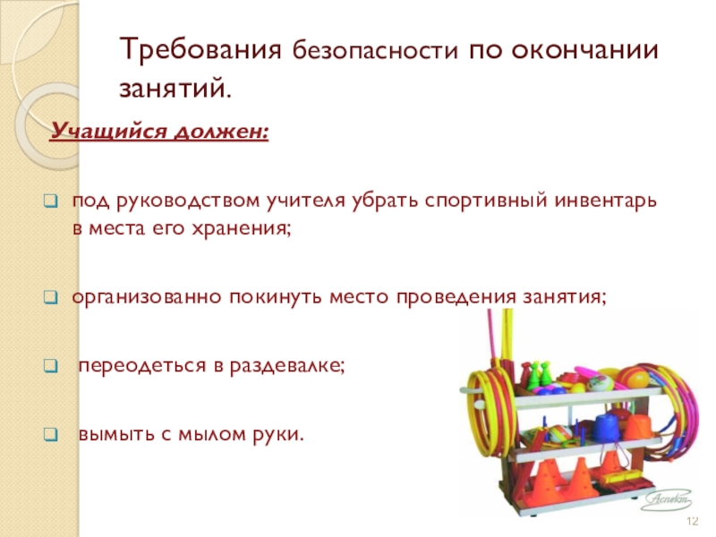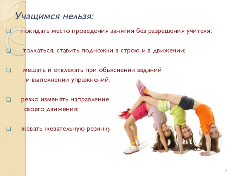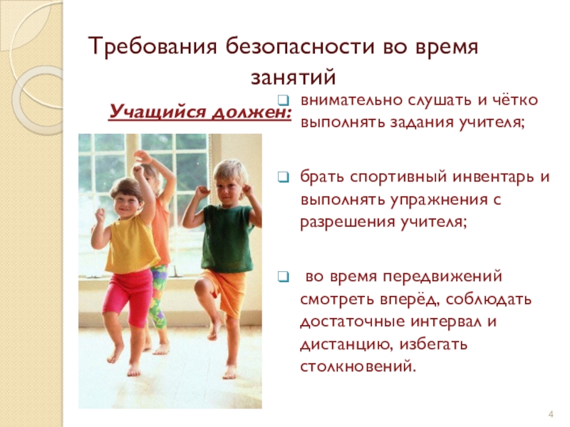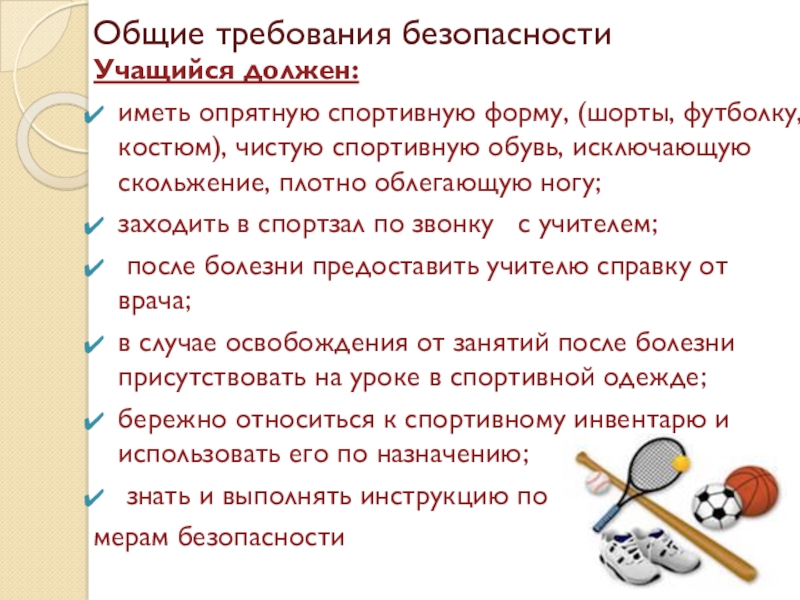 брать спортивный инвентарь и выполнять упражнения с разрешения учителя;