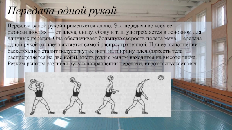 Слайд 10Передача одной рукой