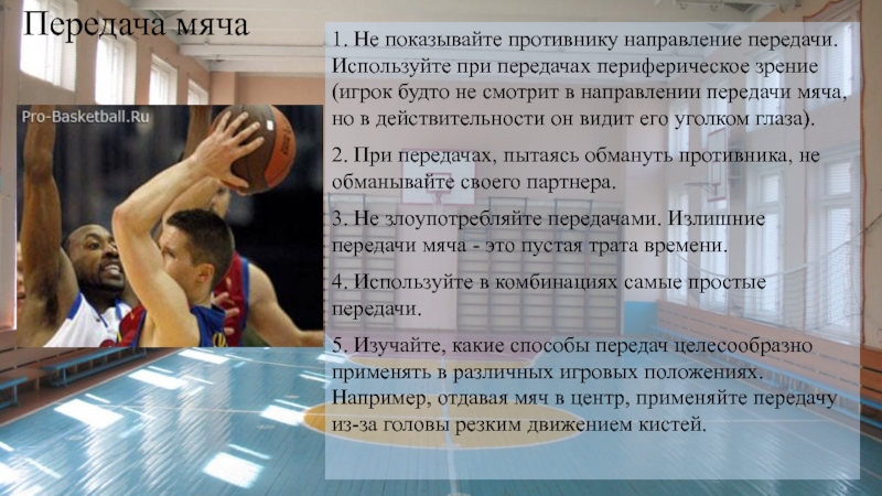 1. Не показывайте противнику направление передачи. Используйте при передачах периферическое