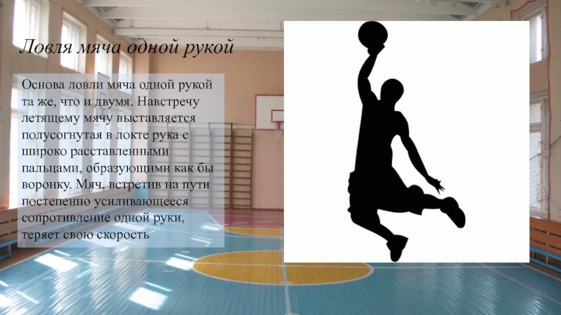 Слайд 5 Ловля мяча одной рукой