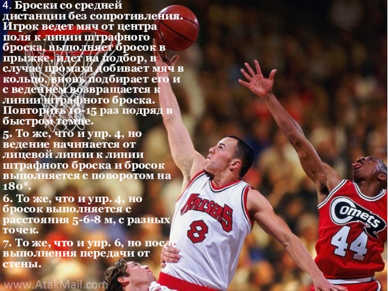 Слайд 214. Броски со средней дистанции без сопротивления. Игрок ведет мяч от