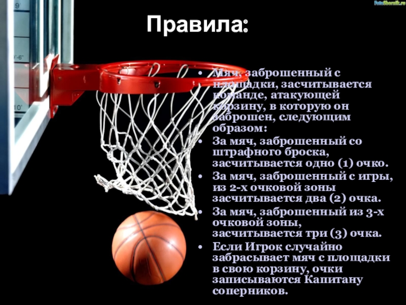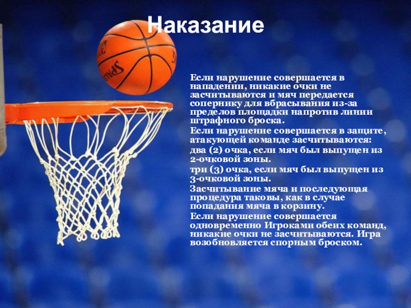 За мяч, заброшенный со штрафного броска, засчитывается одно (1) очко.