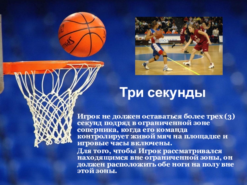 За мяч, заброшенный из 3-х очковой зоны, засчитывается три (3) очка.