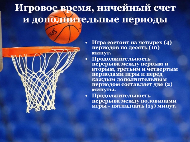 Слайд 7Игровое время, ничейный счет и дополнительные периоды
