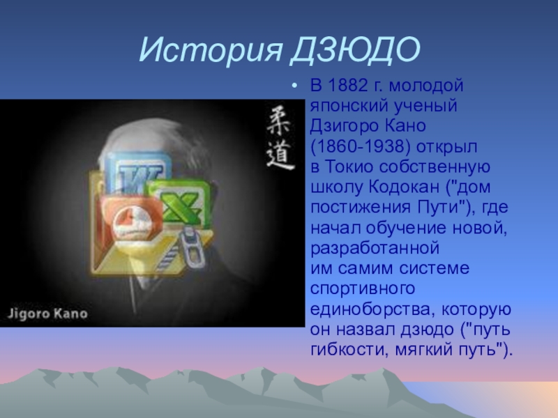 В 1882 г. молодой японский ученый Дзигоро Кано(1860-1938) открыл в Токио собственную