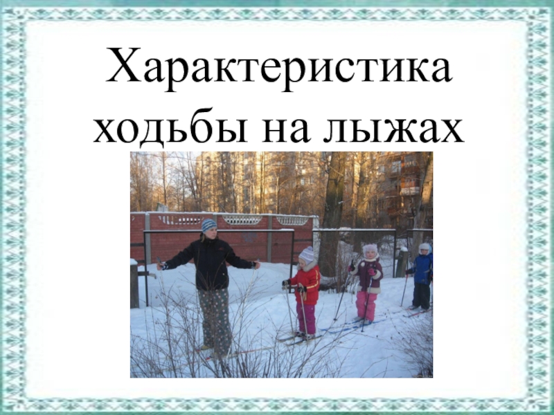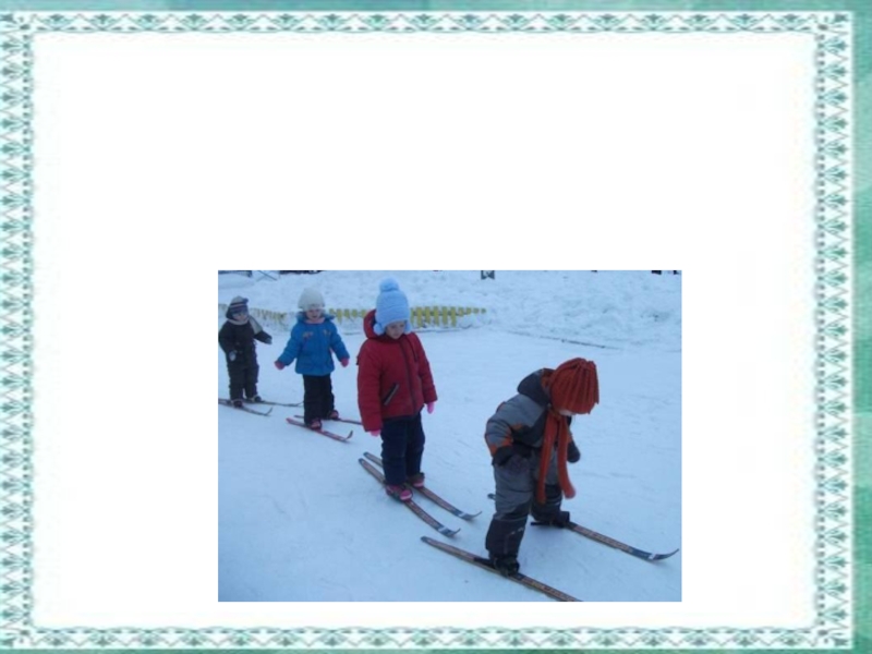 Слайд 9Ходьба на лыжах организуется на утренней и вечерней прогулке в форме