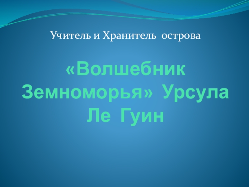 «Волшебник Земноморья» Урсула Ле ГуинУчитель и Хранитель острова