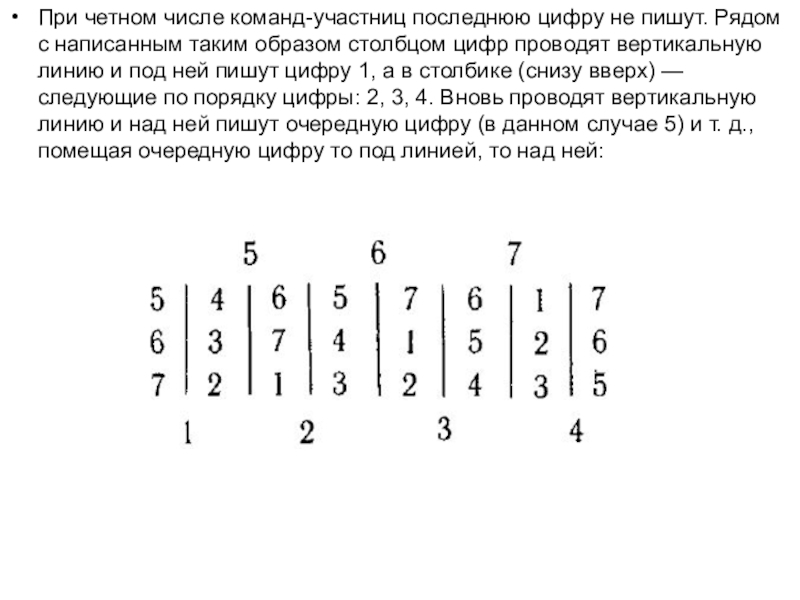 Слайд 4При четном числе команд-участниц последнюю цифру не пишут. Рядом с написанным
