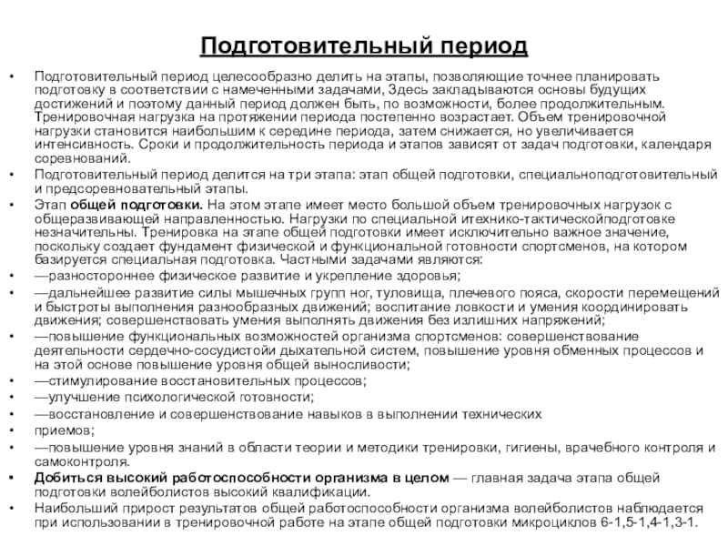 Подготовительный период целесообразно делить на этапы, позволяющие точнее планировать подготовку