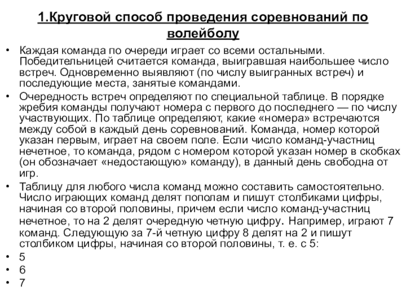 Слайд 31.Круговой способ проведения соревнований по волейболу