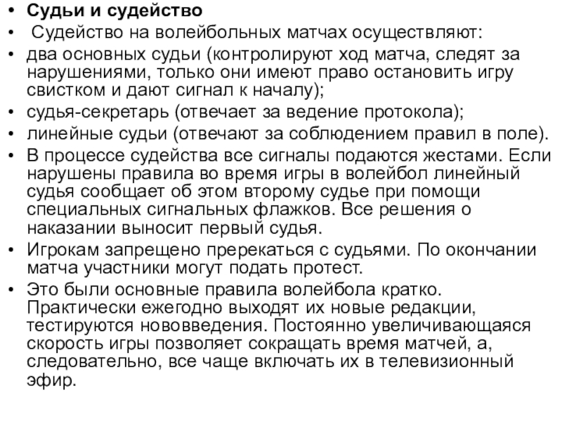 Это были основные правила волейбола кратко. Практически ежегодно выходят их новые редакции, тестируются нововведения. Постоянно увеличивающаяся скорость игры позволяет сокращать время матчей, а, следовательно, все чаще включать их в телевизионный эфир.