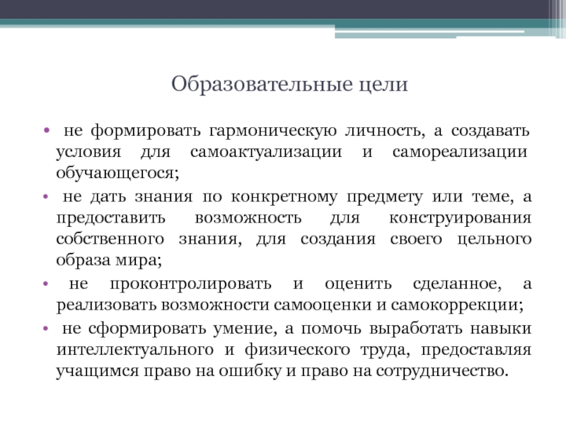 школа должна сделать детей способными прожить моменты поиска знания, анализа ситуации и момент теоретических знаний, чтобы при выходе из школы они сами могли конструировать знания;