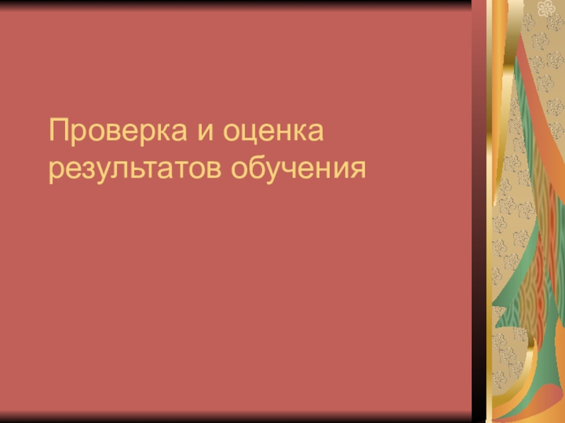 Презентация, доклад по теме Проверка и оценка результатов обучения