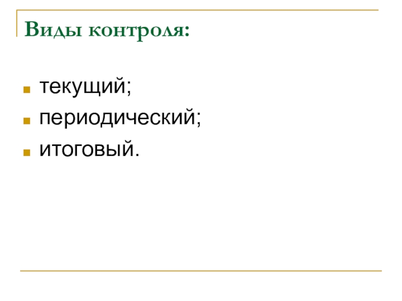 Итоговый контрольПроводится накануне перевода в следующий класс или ступень обучения.Задача – зафиксировать минимум подготовки, который обеспечивает дальнейшее