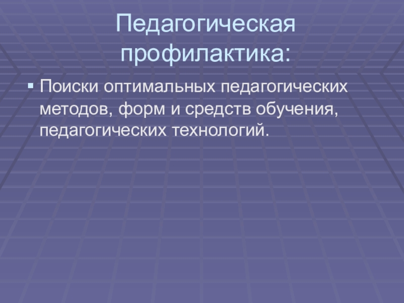 Педагогическая профилактика:Поиски оптимальных педагогических методов, форм и средств обучения, педагогических технологий.