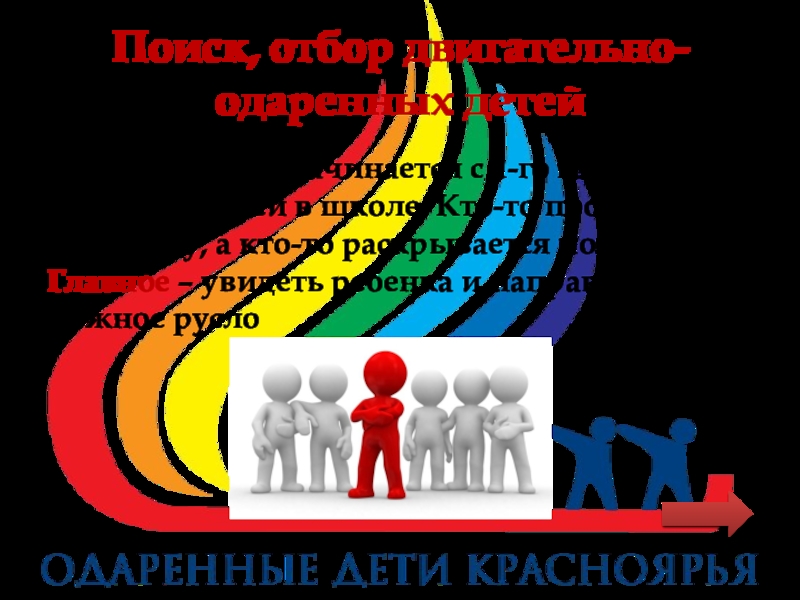 Слайд 4Поиск, отбор двигательно-одаренных детей