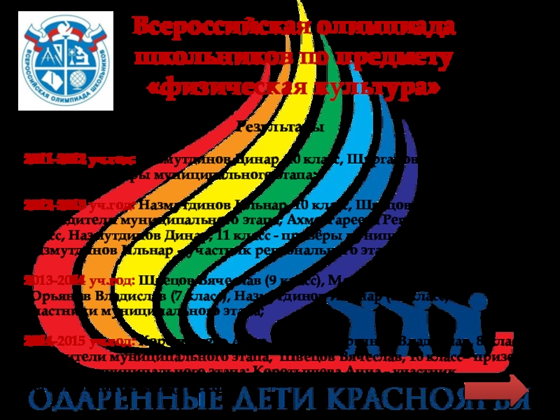 2012-2013 - 2 место на региональном этапе в комплексном зачете.