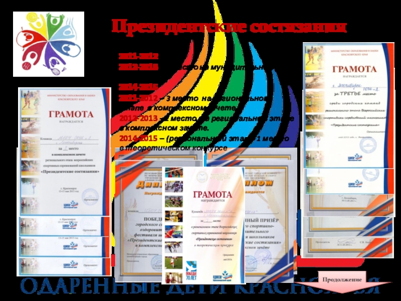 2014-2015 уч.год - 2-е место среди команд городских общеобразовательных учреждений Красноярского края.