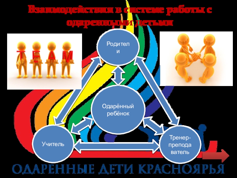 Слайд 9Взаимодействия в системе работы с одаренными детьми