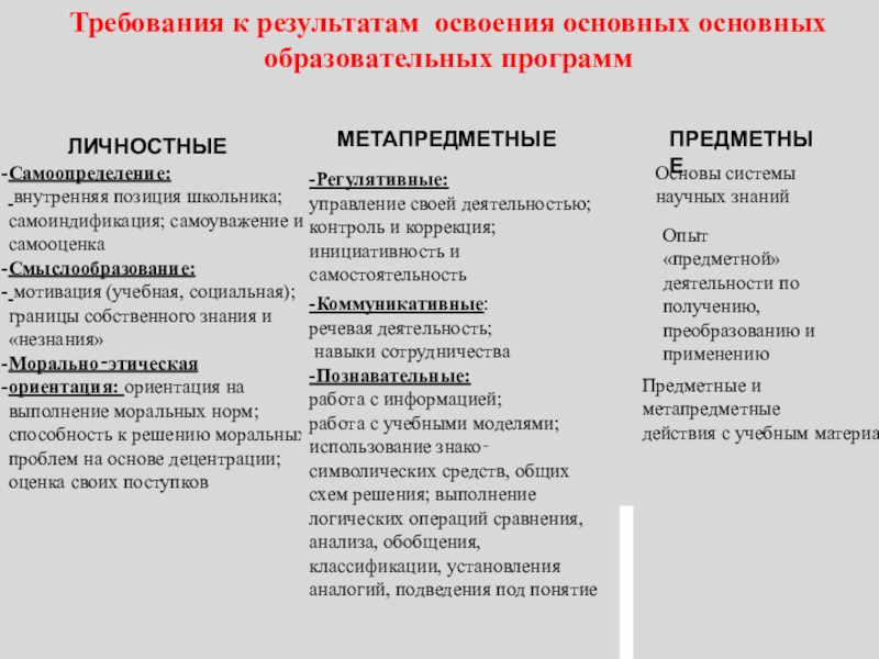 Слайд 4Требования к результатам освоения основных основных образовательных программ