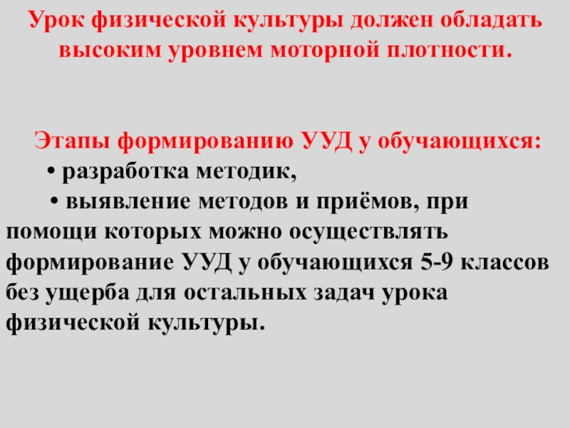 Слайд 12Урок физической культуры должен обладать высоким уровнем моторной плотности.