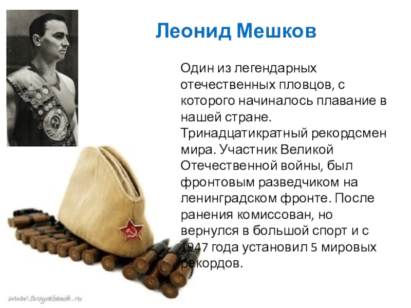 нашей стране. Тринадцатикратный рекордсмен мира. Участник Великой Отечественной войны, был фронтовым разведчиком на ленинградском фронте. После ранения комиссован, но вернулся в большой спорт и с 1947 года установил 5 мировых рекордов.