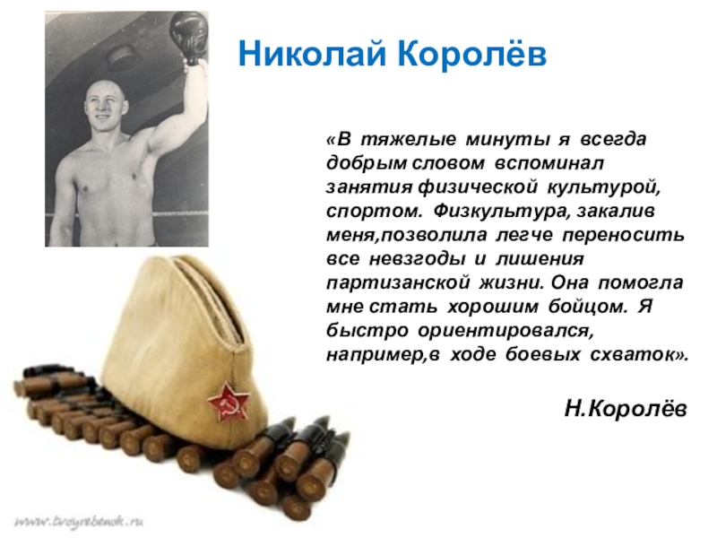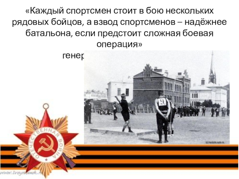 Слайд 2«Каждый спортсмен стоит в бою нескольких рядовых бойцов, а взвод спортсменов