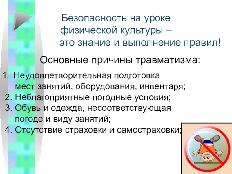 Основные причины травматизма: