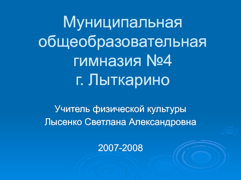 Муниципальная общеобразовательная гимназия №4 г. ЛыткариноУчитель физической культурыЛысенко Светлана Александровна2007-2008