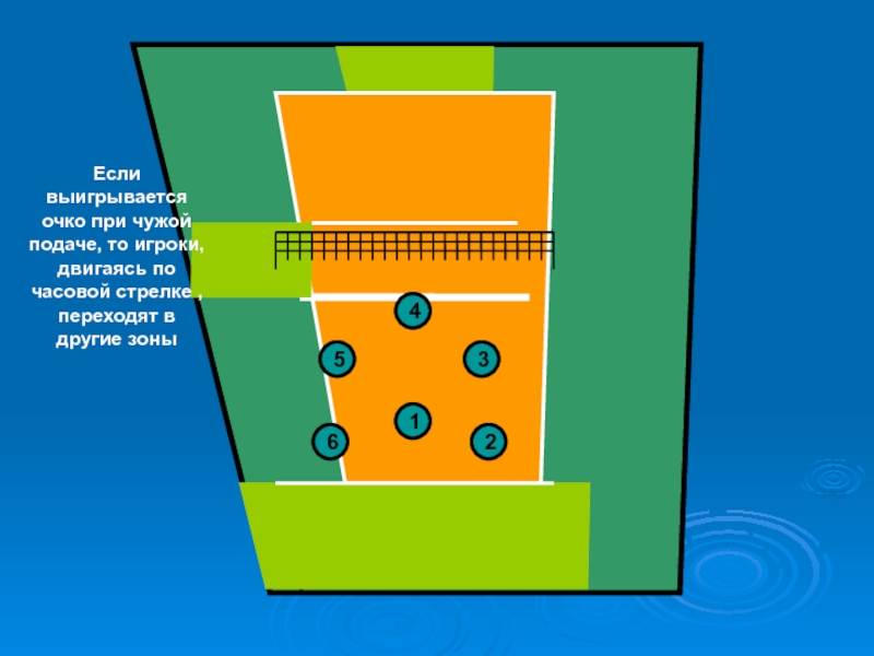 Нумерация зон, начинается с позиции подающего(1) и далее против часовой стрелки