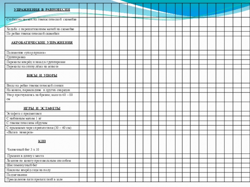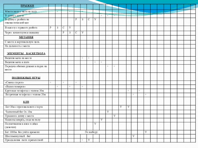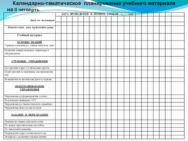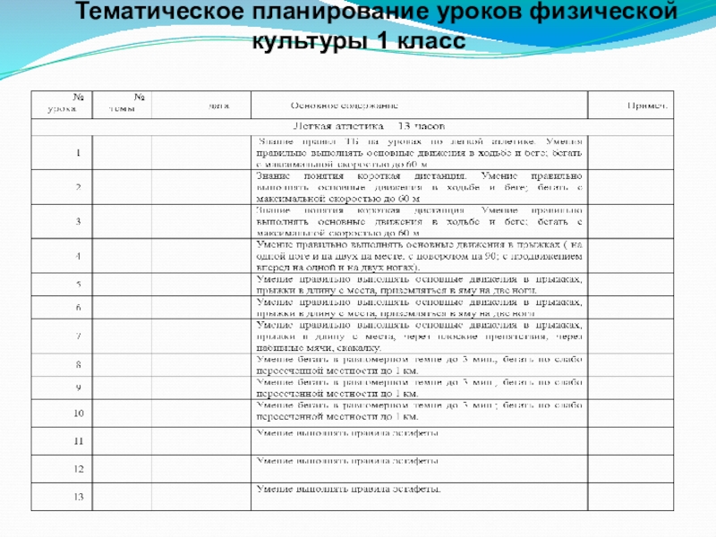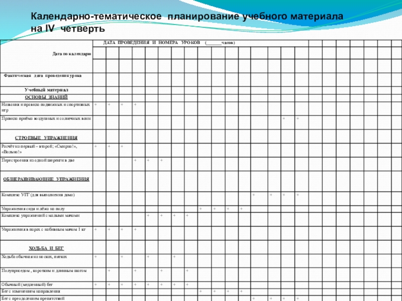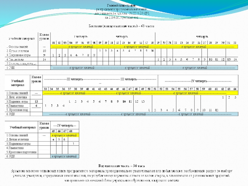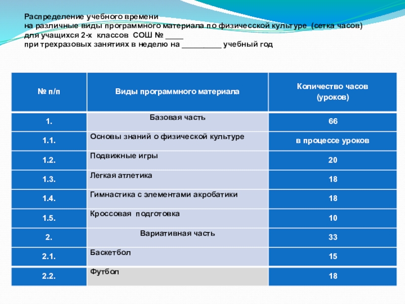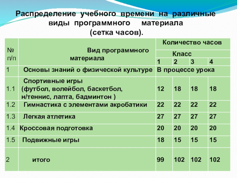 на различные виды программного материала по физичесской культуре (сетка часов)