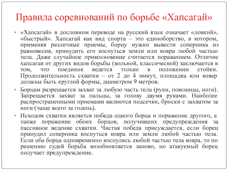 Слайд 2Правила соревнований по борьбе «Хапсагай»