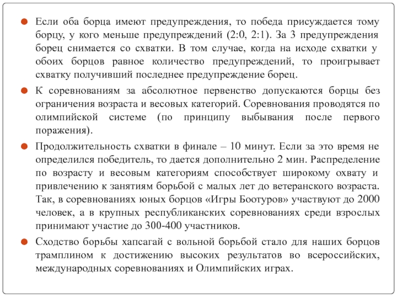 Слайд 3Если оба борца имеют предупреждения, то победа присуждается тому борцу, у