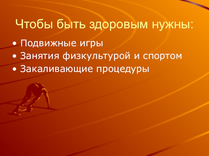 Слайд 3Чтобы быть здоровым нужны:
