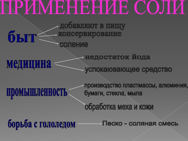 Слайд 14ПРИМНЕНИЕ СОЛИ