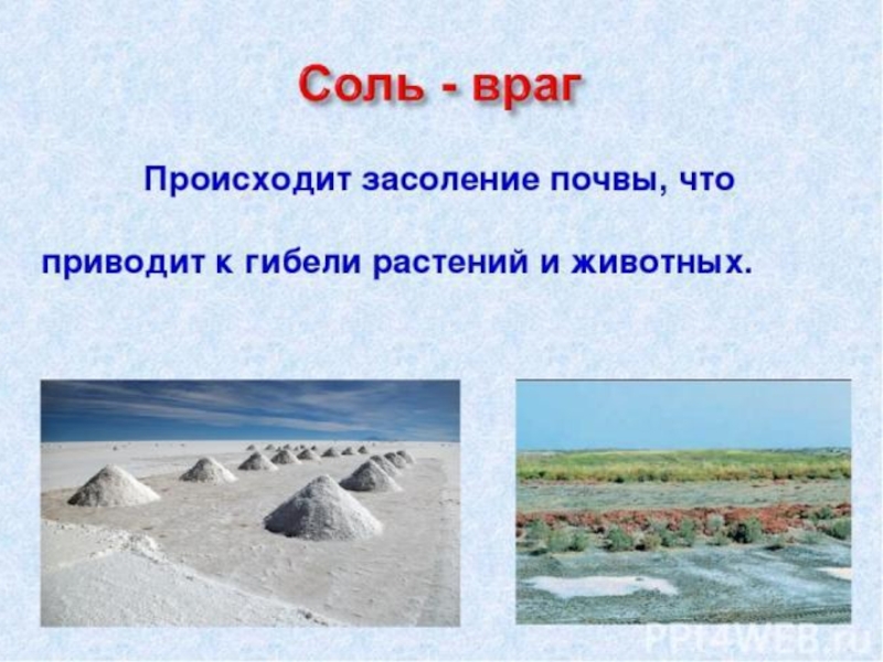 Не смотря на важность и нужность,соль может быть опасной ипричинять вред окружающей среде и здоровью