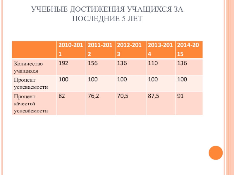 Слайд 6УЧЕБНЫЕ ДОСТИЖЕНИЯ УЧАЩИХСЯ ЗА ПОСЛЕДНИЕ 5 ЛЕТ