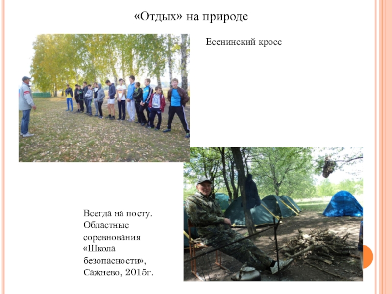 Есенинский кросс Всегда на посту. Областные соревнования «Школа безопасности», Сажнево, 2015г.«Отдых» на природе