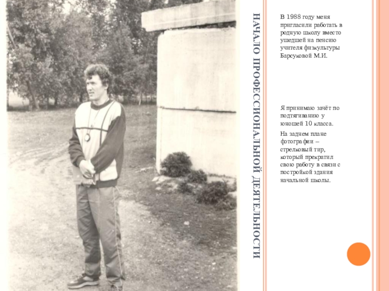 НАЧАЛО ПРОФЕССИОНАЛЬНОЙ ДЕЯТЕЛЬНОСТИВ 1988 году меня пригласили работать в родную школу вместо ушедшей на пенсию учителя физкультуры