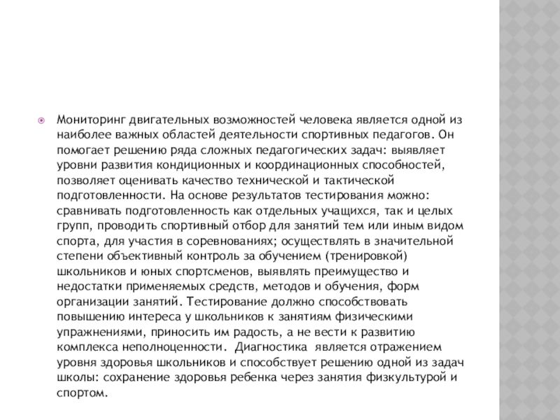 Слайд 11Мониторинг двигательных возможностей человека является одной из наиболее важных областей деятельности