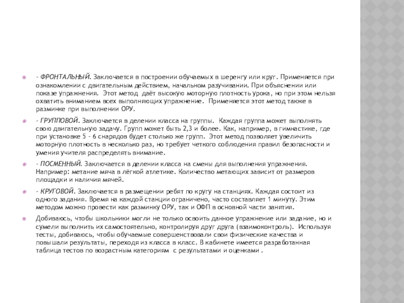 Слайд 15- ФРОНТАЛЬНЫЙ. Заключается в построении обучаемых в шеренгу или круг. Применяется