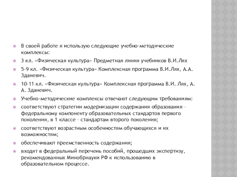 Слайд 12В своей работе я использую следующие учебно-методические комплексы: