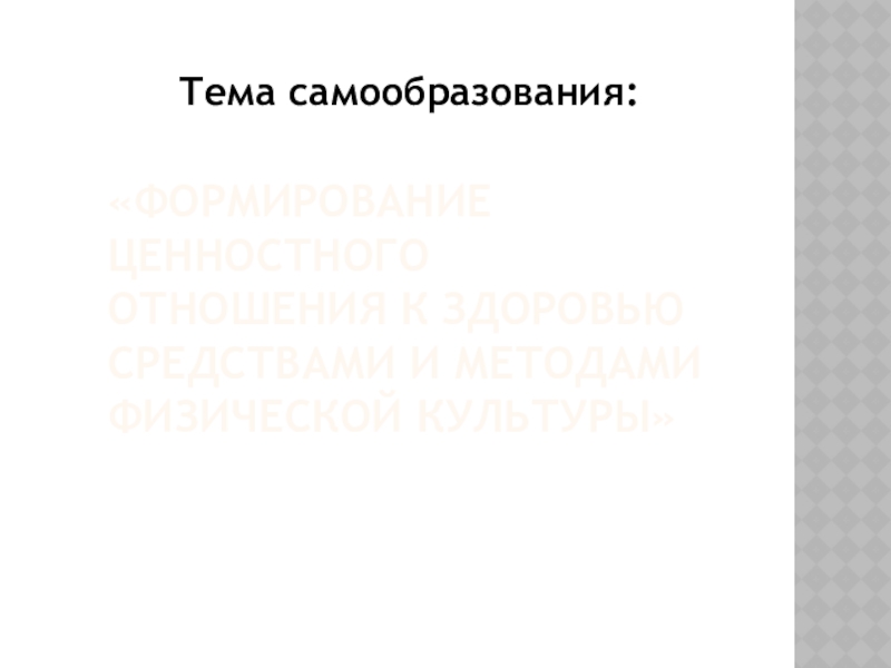 Слайд 22«Формирование ценностного отношения к здоровью средствами и методами физической культуры»