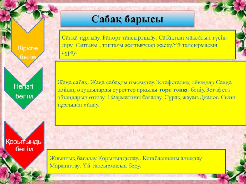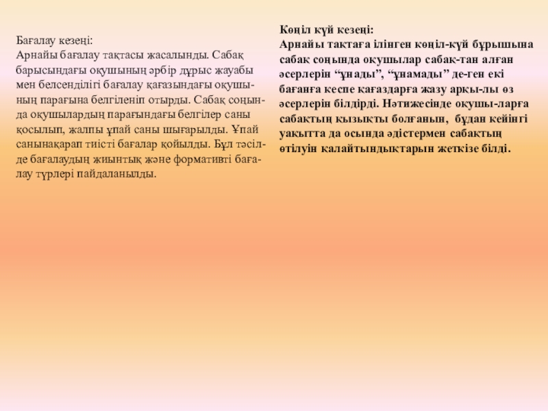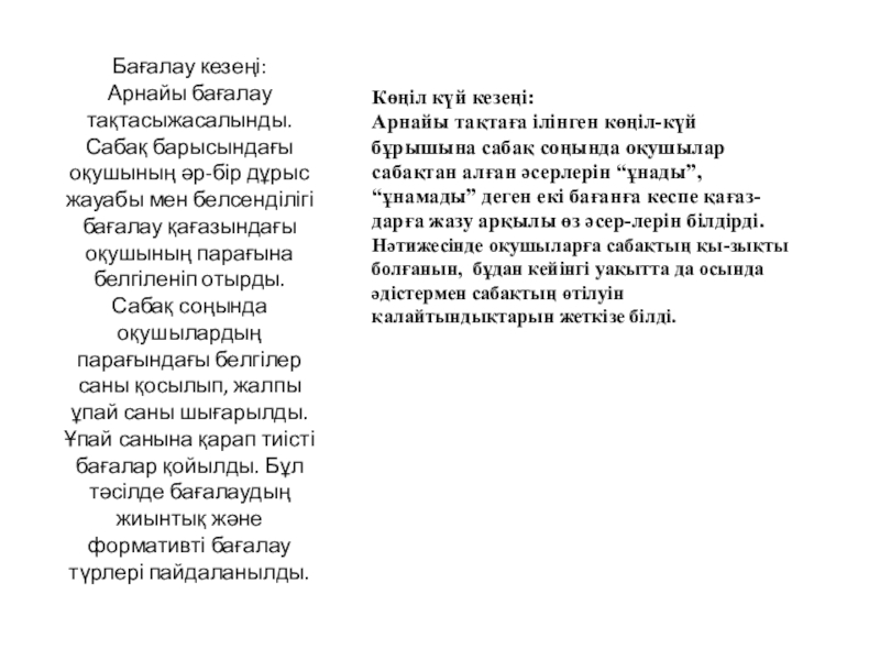 Оқушылар сабаққа түгел қатысып, түгел сөйлейді. Уақыттың басым бөлігі
