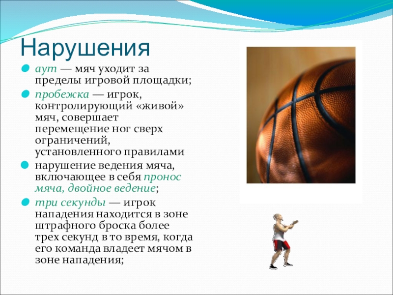 Слайд 11пять секунд — игрок при выполнении вбрасывания не расстается с мячом в