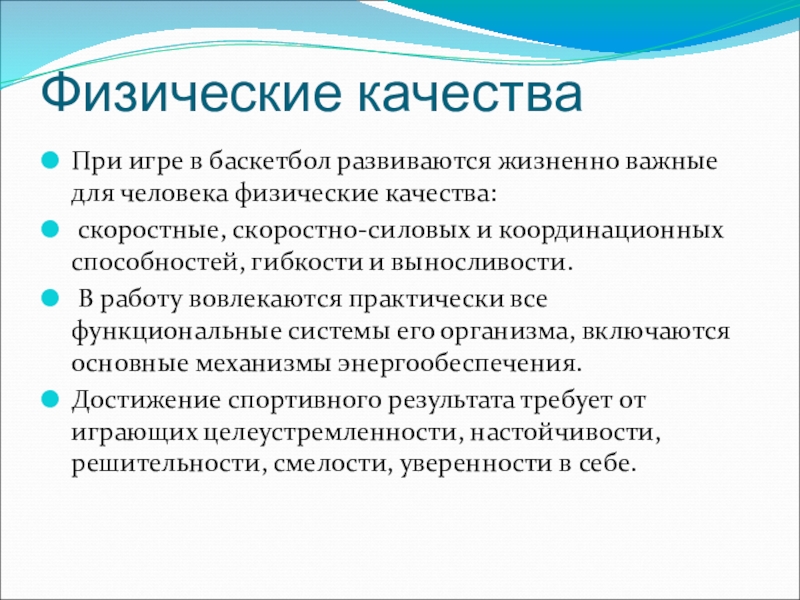 При игре в баскетбол развиваются жизненно важные для человека физические